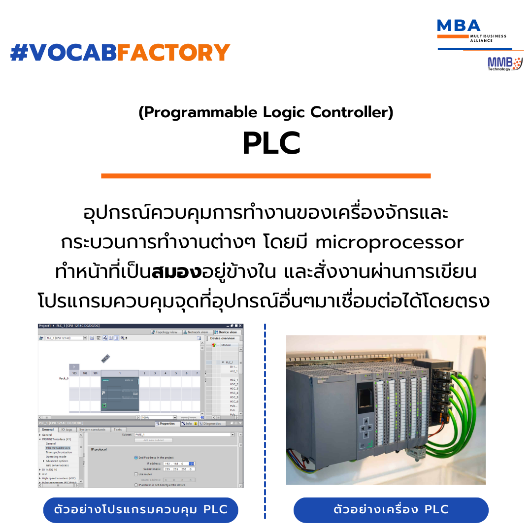 PLC เป็นเหมือน CPU ที่เราใช้กับคอมในบ้าน มีหน้าที่ทำงานเป็นสมอง และมีเมาส์ หน้าจอ คีย์บอร์ด มาเชื่อมต่อด้วย